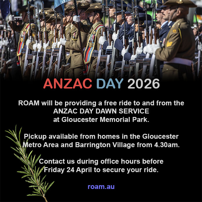 Roam provides Rideshare and Private Hire Car services in and around the Gloucester district, on the NSW MidCoast, Australia. Our normal operating hours are *8am to 8pm.